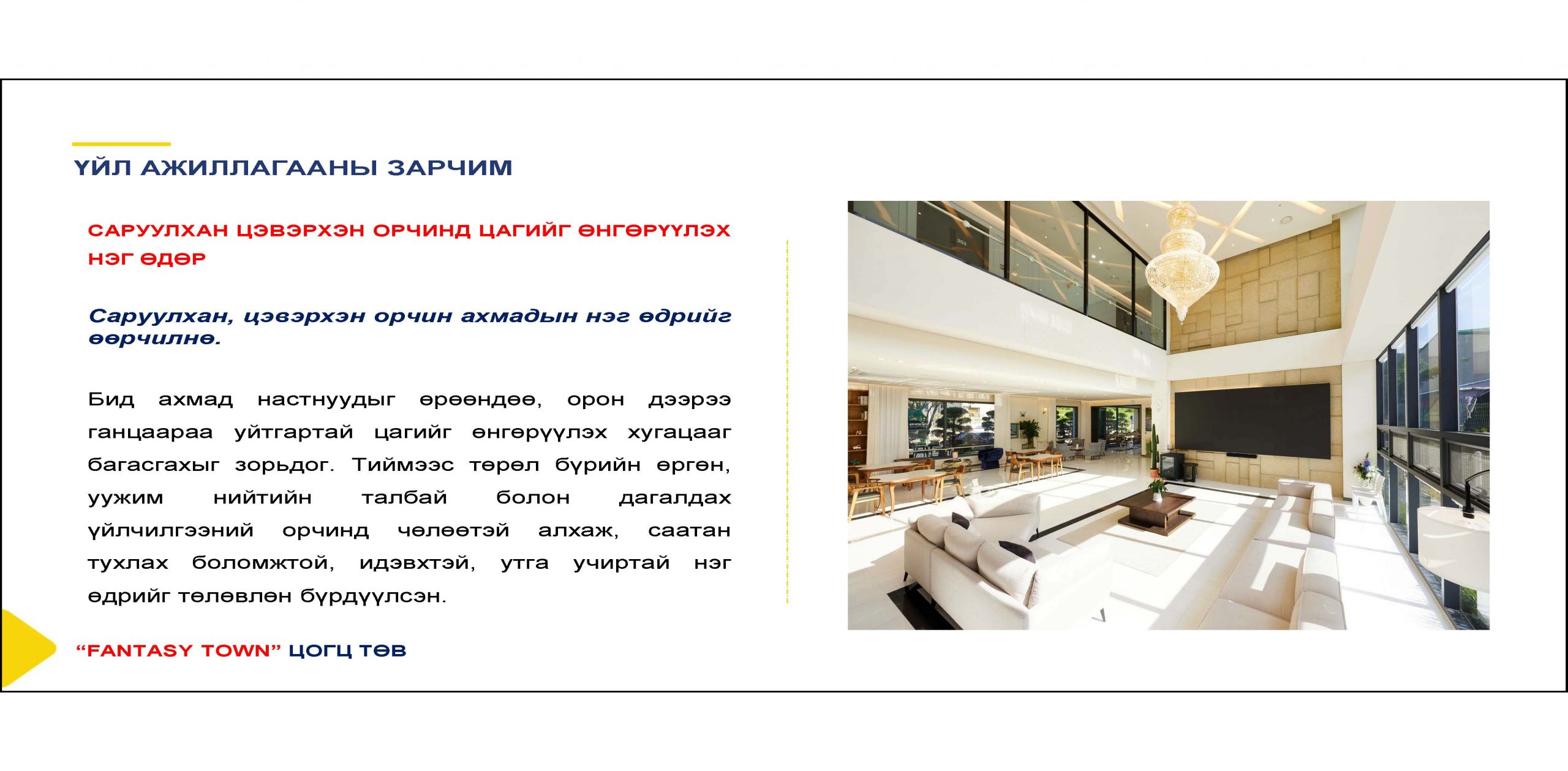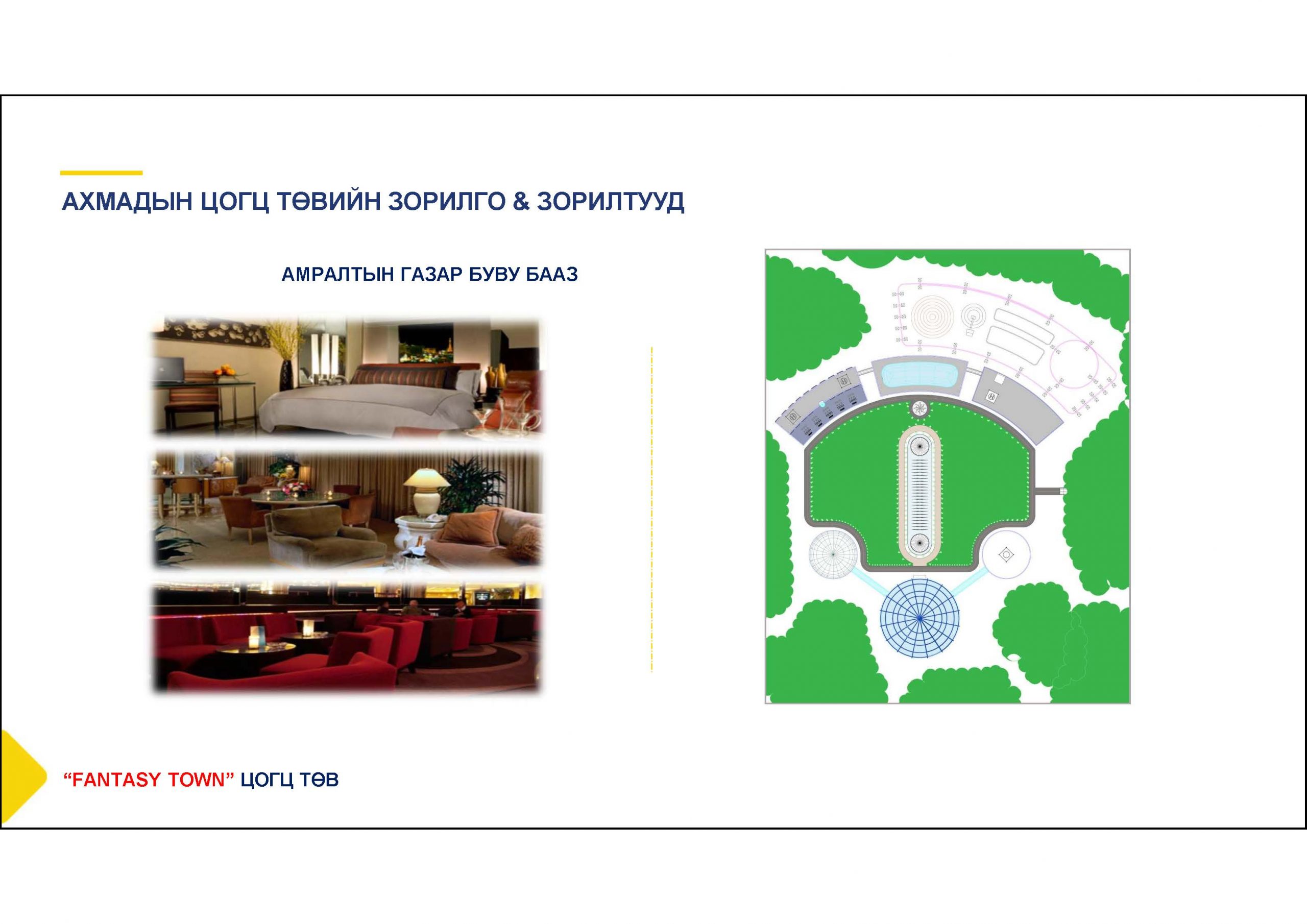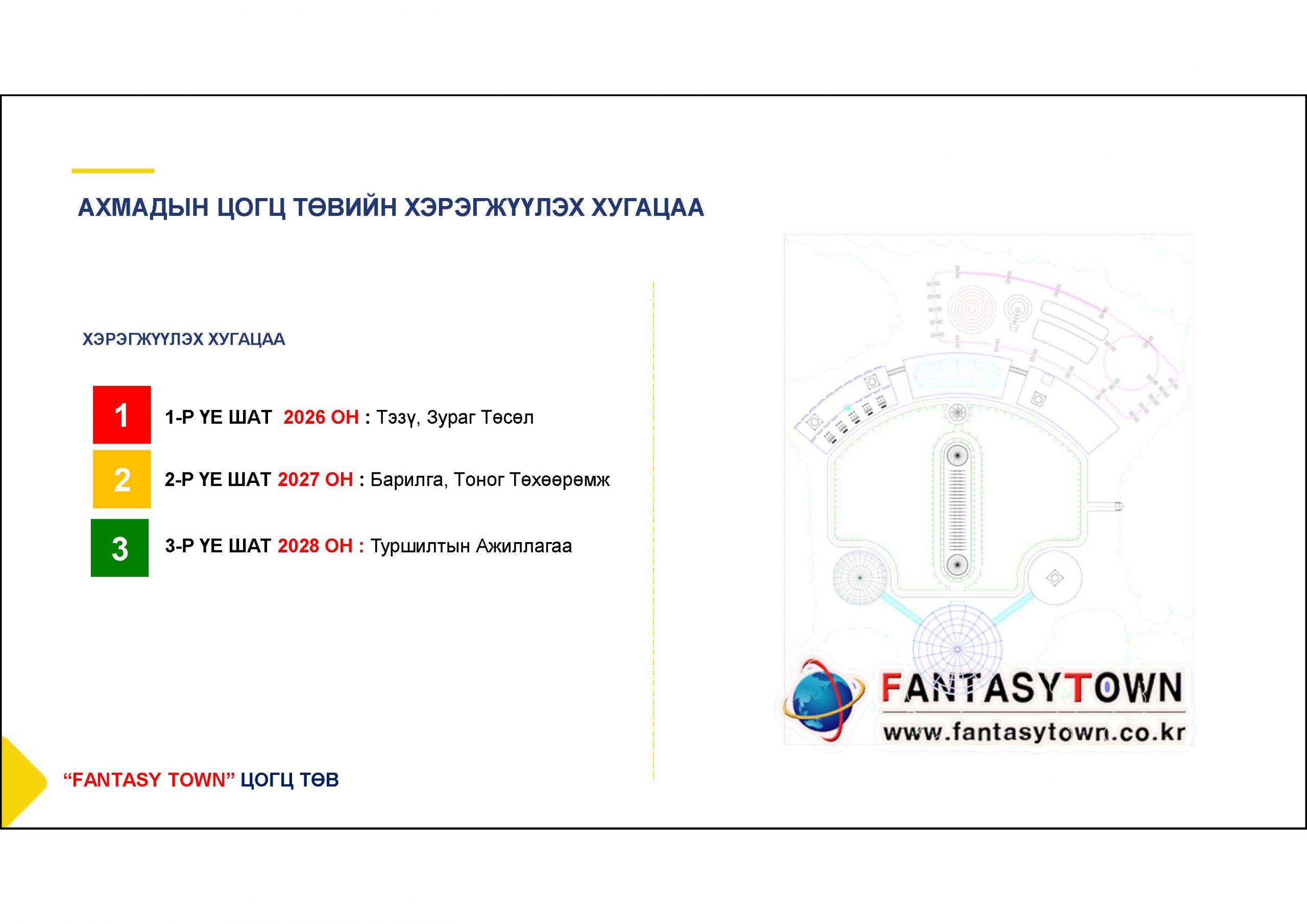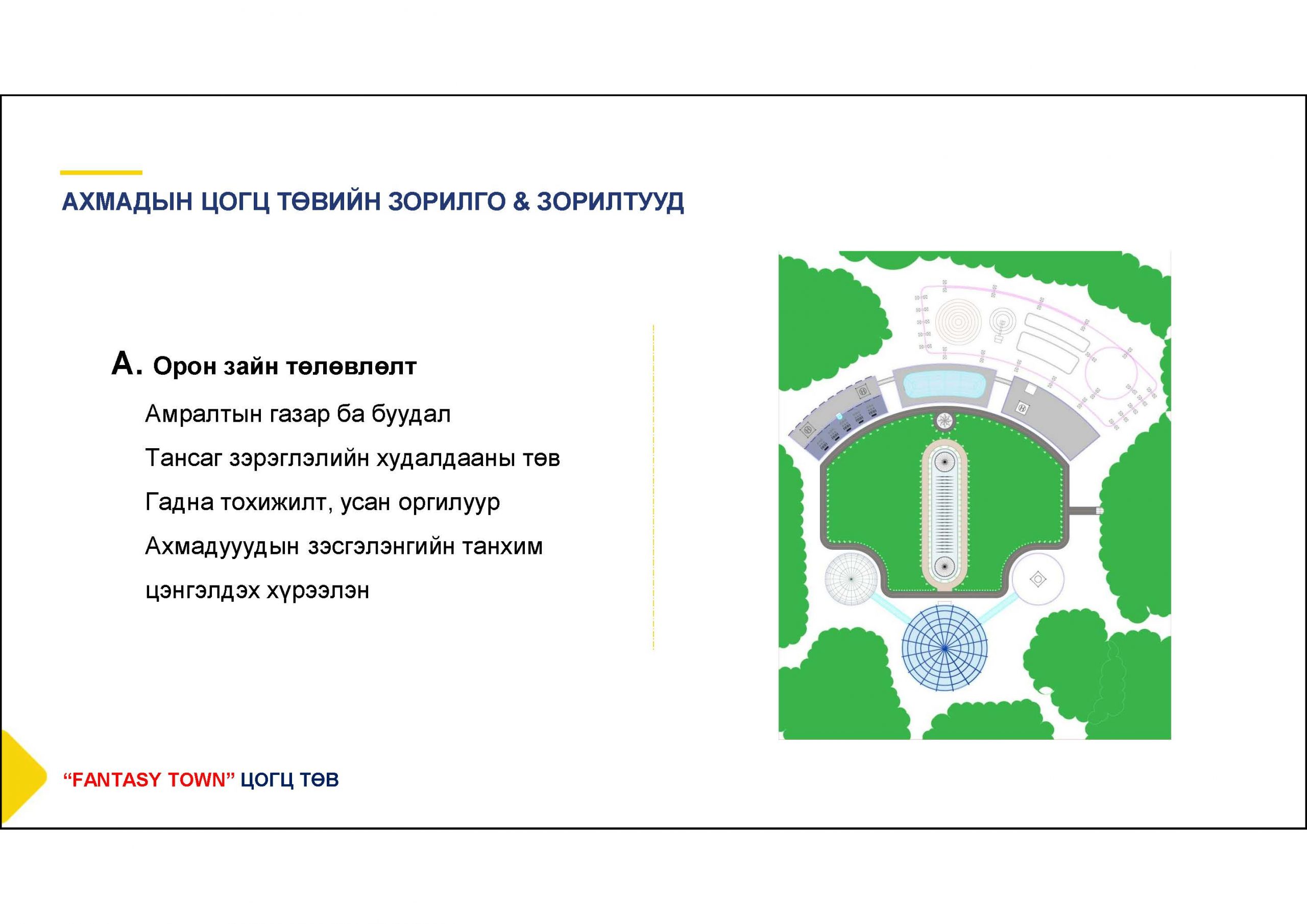 АХМАДЫН АМРАЛТ, СУВИЛАЛ, ҮЙЛЧИЛГЭЭНИЙ “FANTASY TOWN” ЦОГЦ ТӨВ