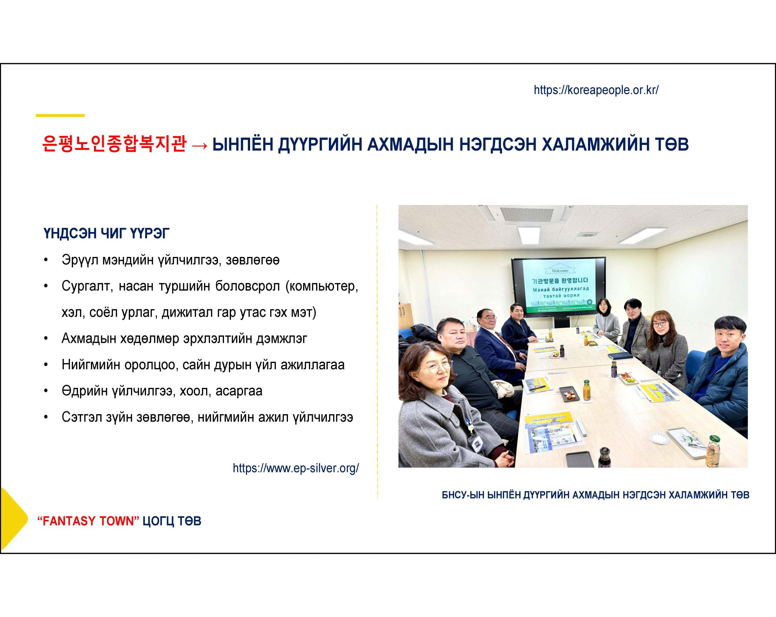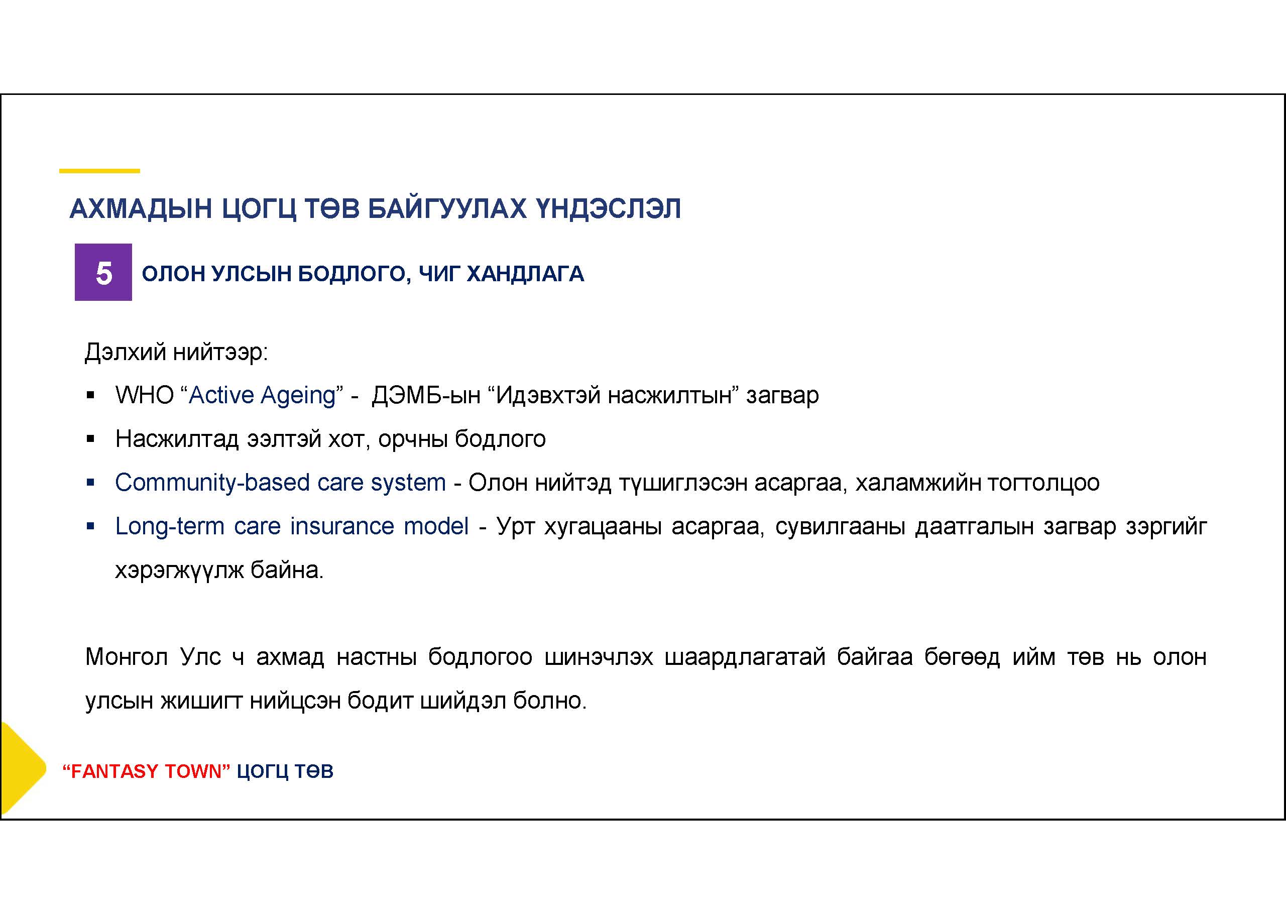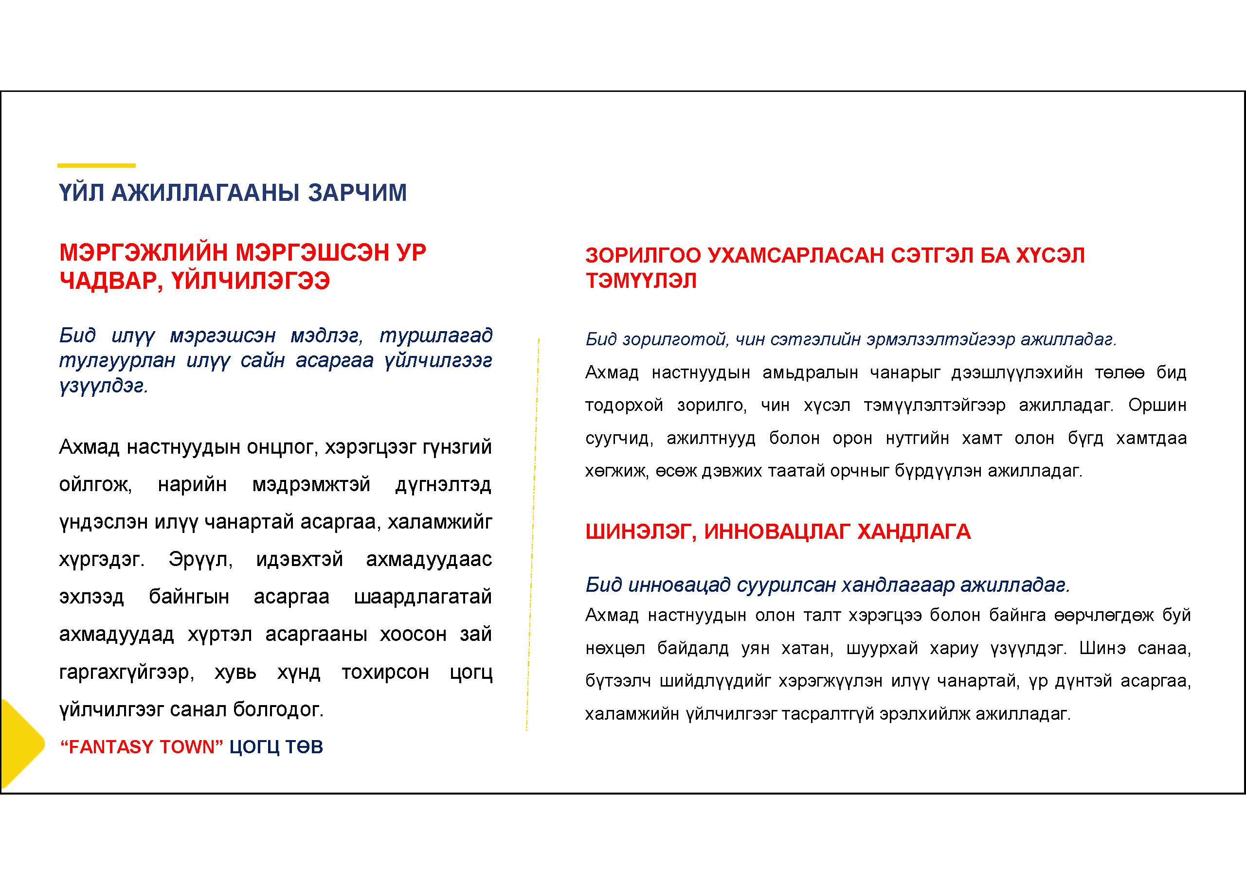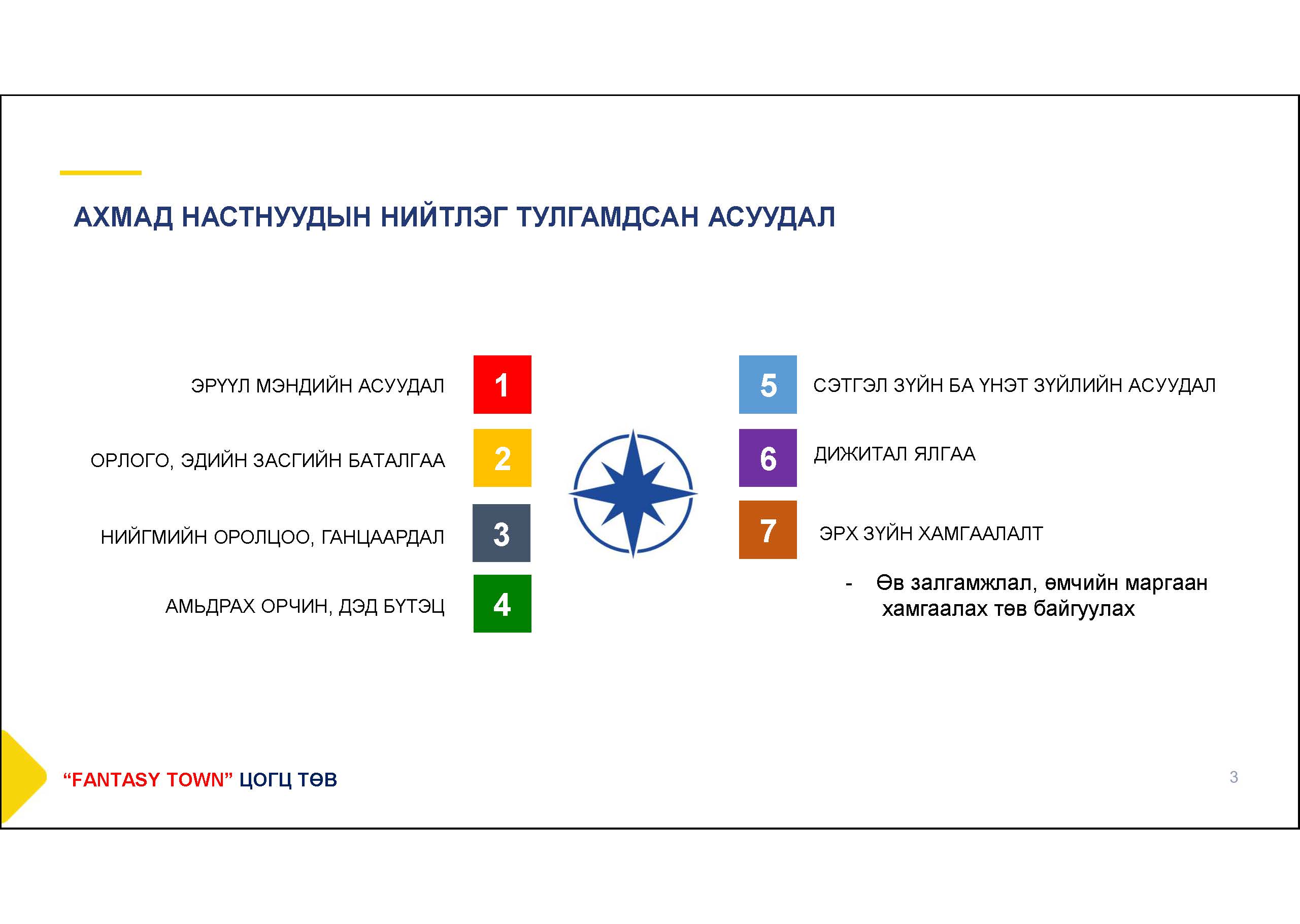 АХМАДЫН АМРАЛТ, СУВИЛАЛ, ҮЙЛЧИЛГЭЭНИЙ “FANTASY TOWN” ЦОГЦ ТӨВ