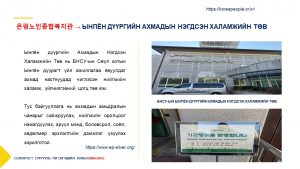 - 대한노인회 은평구지회→БНСУ-ЫН АХМАДЫН ХОЛБООНЫ ЫНПЁН ДҮҮРГИЙН САЛБАР