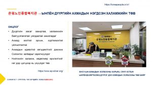 5은평노인종합복지관 → ЫНПЁН ДҮҮРГИЙН АХМАДЫН НЭГДСЭН ХАЛАМЖИЙН ТӨВ