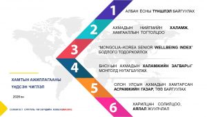 - Ахмадын идэвхтэй хөгшрөлтийг дэмжих Солонгос загварыг хэрэгжүүлдэг