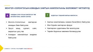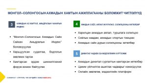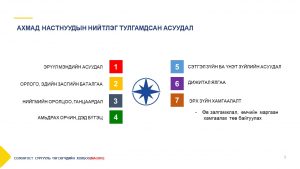 - Ахмадын чадавхыг бэхжүүлэх сургалт, хөтөлбөр хэрэгжүүлэх