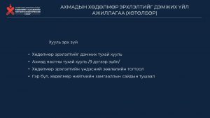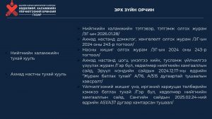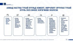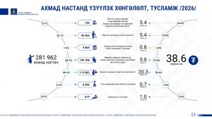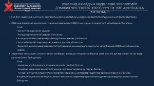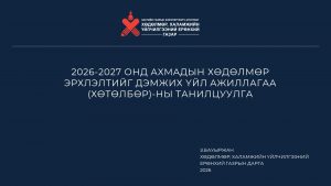 ХХҮЕГ-ын дарга Ж.Бауыржан 2026 -2027оны “Ахмадын хөдөлмөр эрхлэлтийг дэмжих үйл ажиллагааны хөтөлбөр”-ийг танилцууллаа. Ахмадын хөдөлмөр эрхлэлтийг дэмжих үйл ажиллагааны хөтөлбөрийн эрх зүйн орчин, төсвийн талаар танилцууллаа.