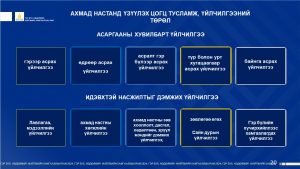 Гэр бүл,хөдөлмөр,нийгмийн хамгаалалын яамны Халамжийн бодлогын газрын дарга Ю.Отгонбилэг өөрийн илтгэлдээ “Ахмад настаны нийгмийн хамгаалал, хууль тогтоомжийн хэрэгжилтийн талаар статистик үзүүлэлт дээр тайлбарлаж ярилаа. Ахмад настны талаар хэрэгжүүлэх арга хэмжээний 2026-2028 оны төлөвлөгөөг танилцуулав.