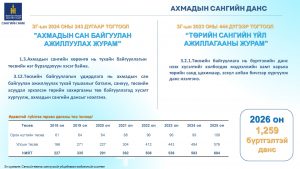 Сангийн яамны Төрийн сангийн санхүүжилт, тайлан бүртгэлийн хэлтсийн дарга Н.Мөнхсүх “Ахмадын сангийн тухай” илтгэлдээ: 2024 оны Ахмадын сан байгуулж ажиллах журмын тухай Засгийн газрын 243 тоот тогтоол, төрийн сангийн үйл ажиллагааны журам батлах тухай 2023 оны Засгийн газрын 444 тоот тогтоолын тухай тайлбарлан таниулж ярилаа.