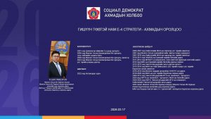 УИХ-ын гишүүн, Чингэлтэй дүүргийн Монгол Ардын намын хорооны дарга, МАН-ын “Гишүүн төвтэй нам Е-4 стратегийг хөгжүүлэх хорооны дарга Н.Батсүмбэрэл Тусгаар тогтнолын ордонд өнөөдөр /2026.03.17/ болсон “Гишүүн төвтэй нам Е-4 стратеги-Ахмадын оролцоо” уулзалтад оролцлоо.