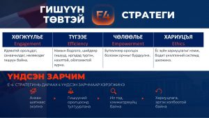 Монгол Ардын намын Бага хурлын II хуралдаан саяхан болж намын дарга, УИХ-ын дарга Н.Учрал “Эрх чөлөөний дөрвөн зам, дөрвөн чөлөөлөлт” концепцыг танилцуулж хэлэлцүүлсэн билээ. МАН-ын гишүүдийн бүх түвшинд хэрэгжүүлэх “Гишүүн төвтэй нам 4-E стратеги”-ийг хэлэлцэн баталсан талаарх мэдээллийг УИХ-ын гишүүн Н.Батсүмбэрэл ахмадуудад танилцууллаа.