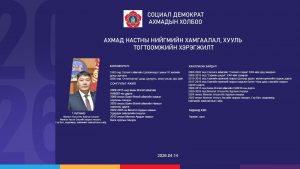 Монгол Ардын намын дэргэдэх Социал Демократ Ахмадын Холбооноос нийслэлийн гишүүд, дэмжигчдэд зориулан зохион байгуулсан ээлжит уулзалтад намын Нарийн бичгийн дарга С.Мөнгөнчимэг, СДАХ-ны тэргүүн Б.Гомбо, Ерөнхий нарийн бичгийн дарга Т.Гантөмөр нар оролцлоо.