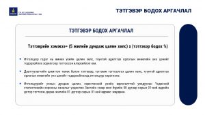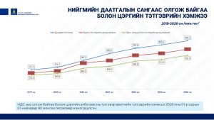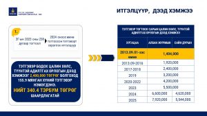 Өнөөдрийн байдлаар дундаж тэтгэврийн хэмжээ 930.2 мянган төгрөг байгаа бөгөөд ахмадуудын зүгээс тэтгэврийн доод хэмжээг нэмэгдүүлэх шаардлага тавьж байгаа бөгөөд тэтгэвэрийн нэмэгдлийг хэрэгжүүлэхэд дор хаяж улсын төсөвт 4.6 их наяд төгрөг шаардлагатайг салбарын сайд хэллээ. Иймд улсын төсвийг хэлэлцэн батлах эрх УИХ-д хадгалагддаг учраас энэ асуудлыг УИХ хэлэлцэн шийдвэрлэх бөгөөд улсын төсвийн боломж, нөхцөлтэй уялдуулах шаардлагатай гэж үзэж байгаагаа илэрхийлсэн юм.